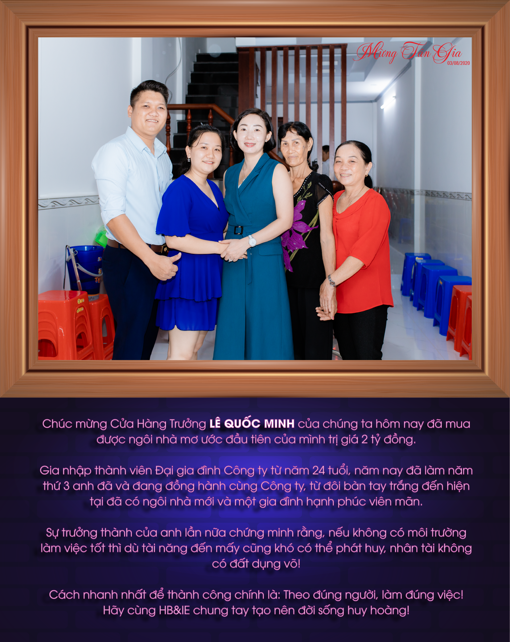 Chúc mừng Cửa Hàng Trưởng LÊ QUỐC MINH của chúng ta hôm nay đã mua được ngôi nhà mơ ước đầu tiên của mình trị giá 2 tỷ đồng.
